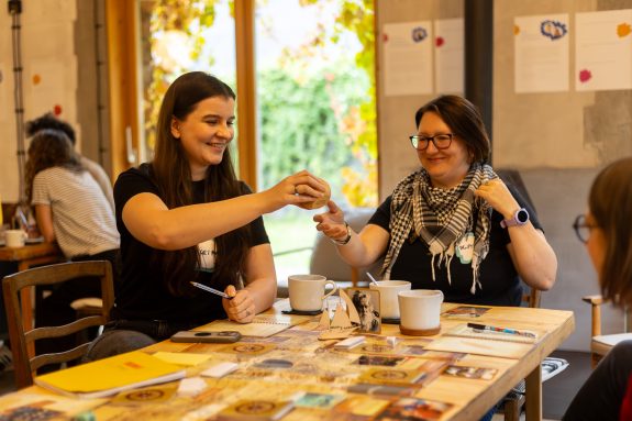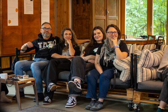 Spotkanie w Oczyszczalni było przestrzenią wymiany doświadczeń i rozmów o tym, co będzie się działo na etapie testowania – o wyzwaniach, planach i możliwościach. To był moment zatrzymania się, spojrzenia na swoje pomysły z różnych perspektyw oraz zebrania odwagi i energii do dalszego działania. Ciepła, otwarta atmosfera sprzyjała rozmowom i budowaniu relacji między osobami, które – choć pracują nad różnymi rozwiązaniami – łączy wspólny cel: zmiana społeczna.