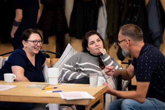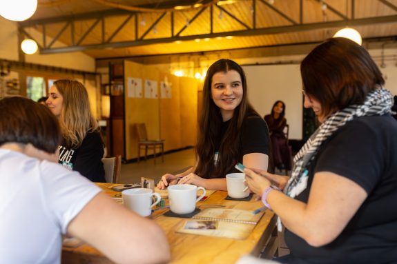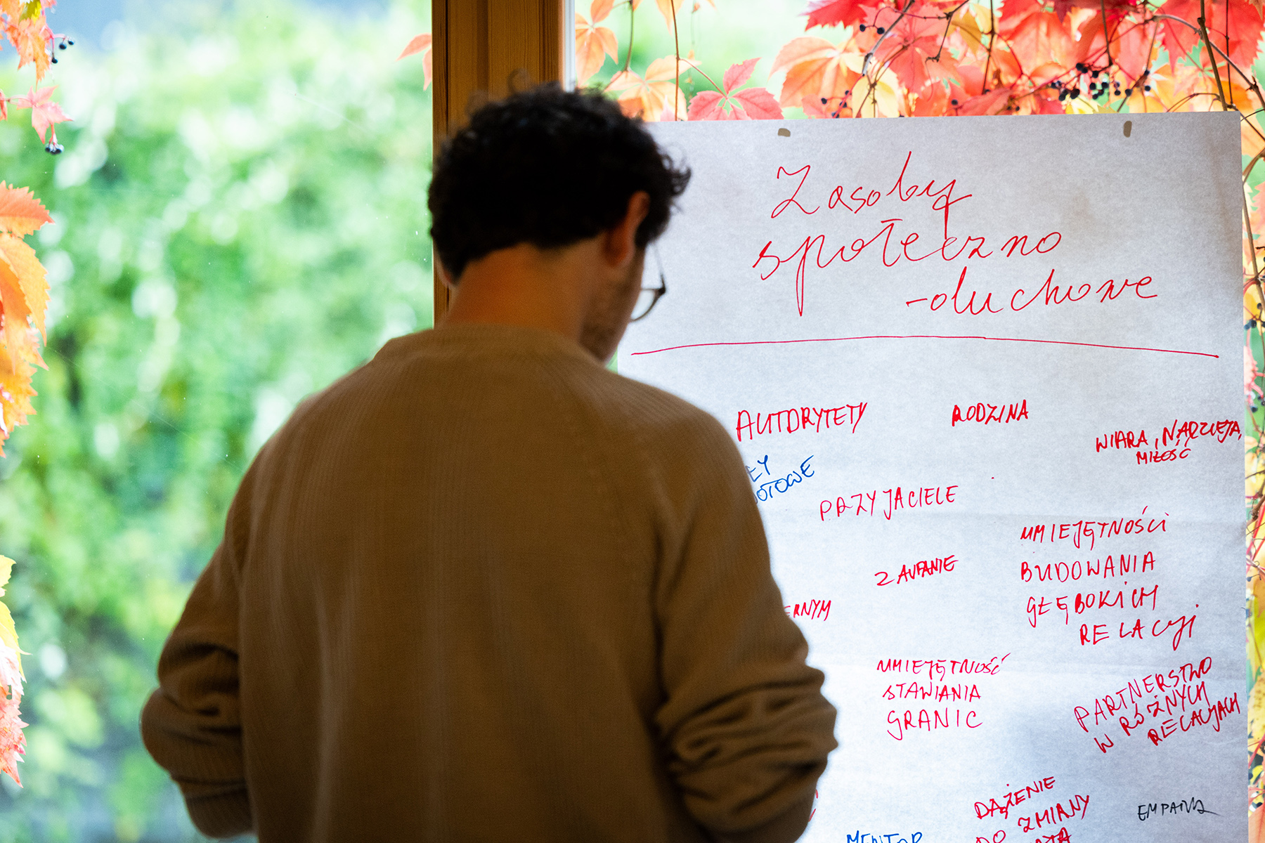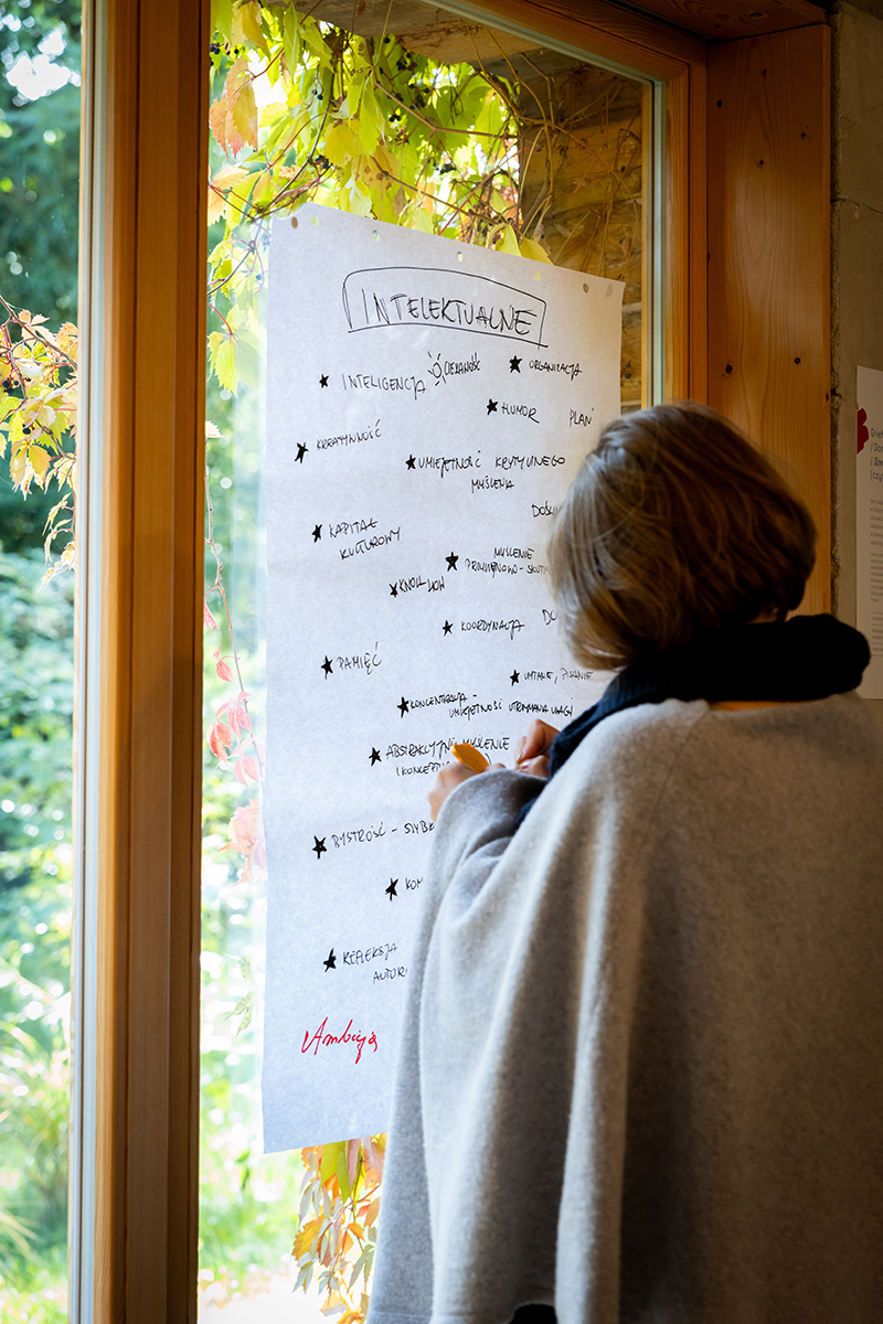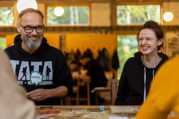 Na zakończenie Tomasz Frejtag – autor innowacji „Teatr przy stole” – zaprosił wszystkich do udziału w sesji mindfulness „Słowo na W, którego potrzebujemy” – łączącej opowieść, uważność i odpoczynek. To był moment wyciszenia po intensywnych rozmowach – przestrzeń na refleksję, czułość wobec siebie i radość z samego bycia tu i teraz.